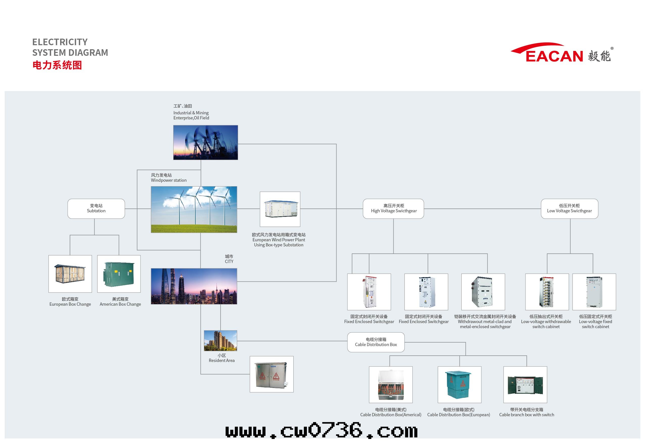 В Китае система распределения энергии делится на три части: системы распределения высокого, среднего и низкого напряжения.